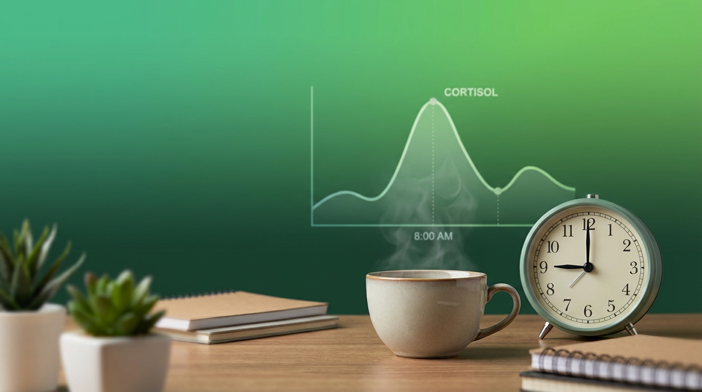 起きてすぐのコーヒーはカフェインの効果を半減させています。起床後30-60分でコルチゾール(覚醒ホルモン)がピークに達するため、カフェインと競合します(Chronobiology International, 2009)。