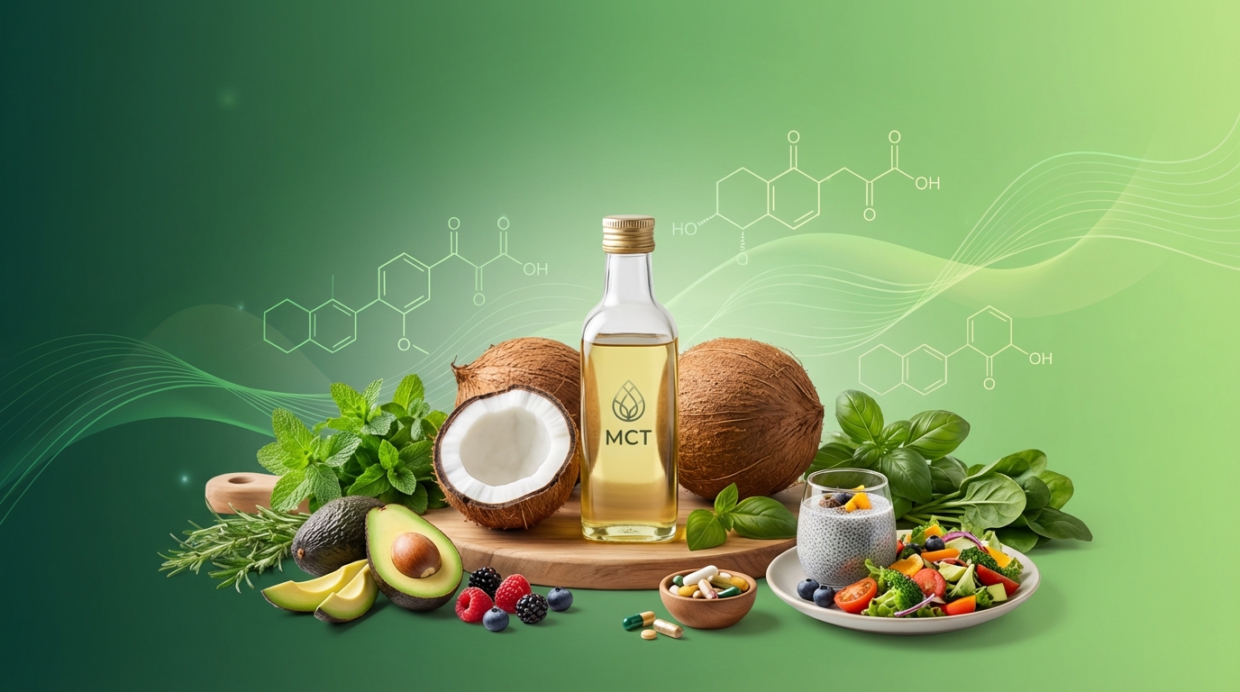 MCTオイル(Medium Chain Triglycerides:中鎖脂肪酸油)は、ココナッツオイルやパーム核油に含まれる中鎖脂肪酸を精製・濃縮した機能性オイルです。通常の食用油(長鎖脂肪酸)と異なり、消化吸収が約4倍速く、肝臓で直接エネルギーに変換されるという特性を持っています。